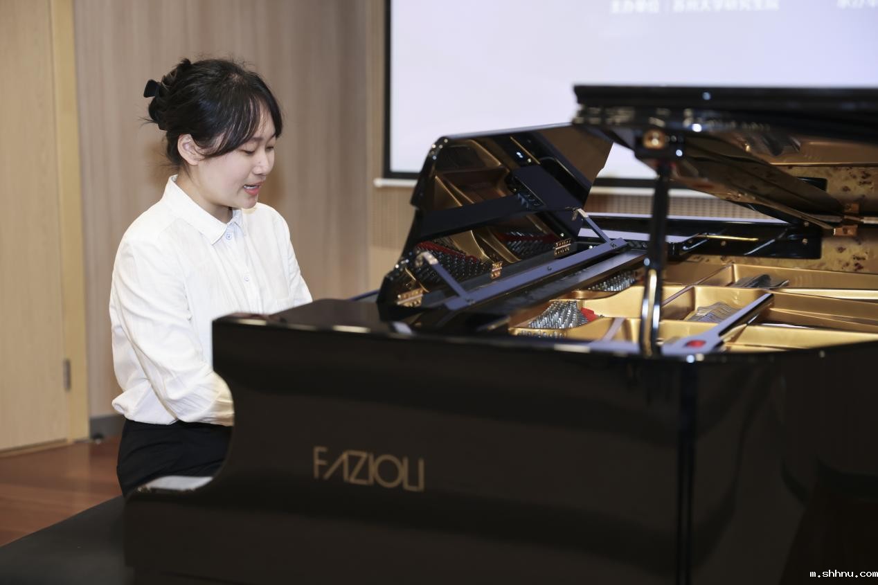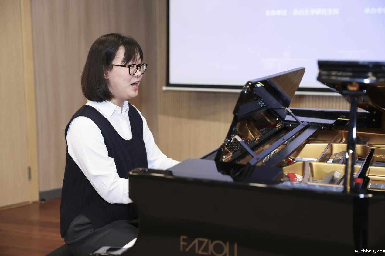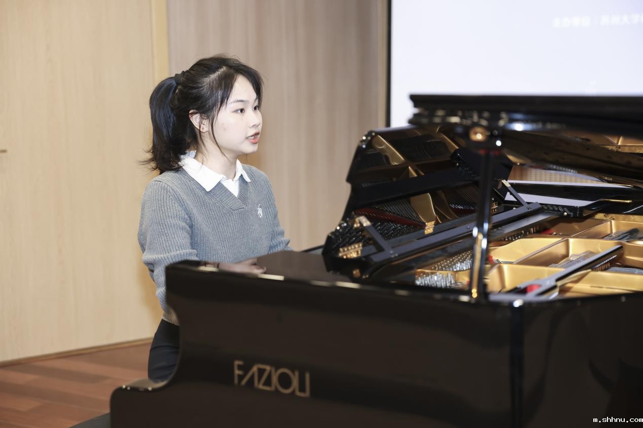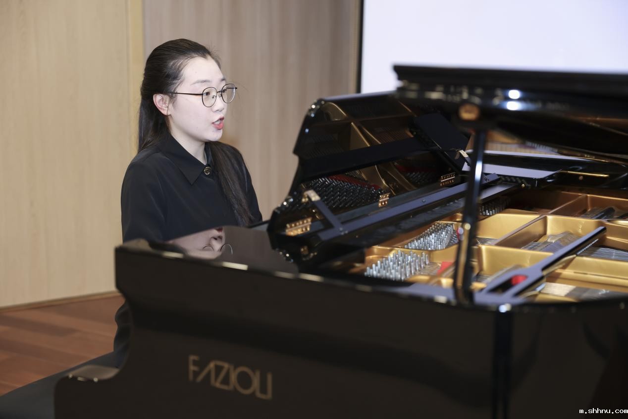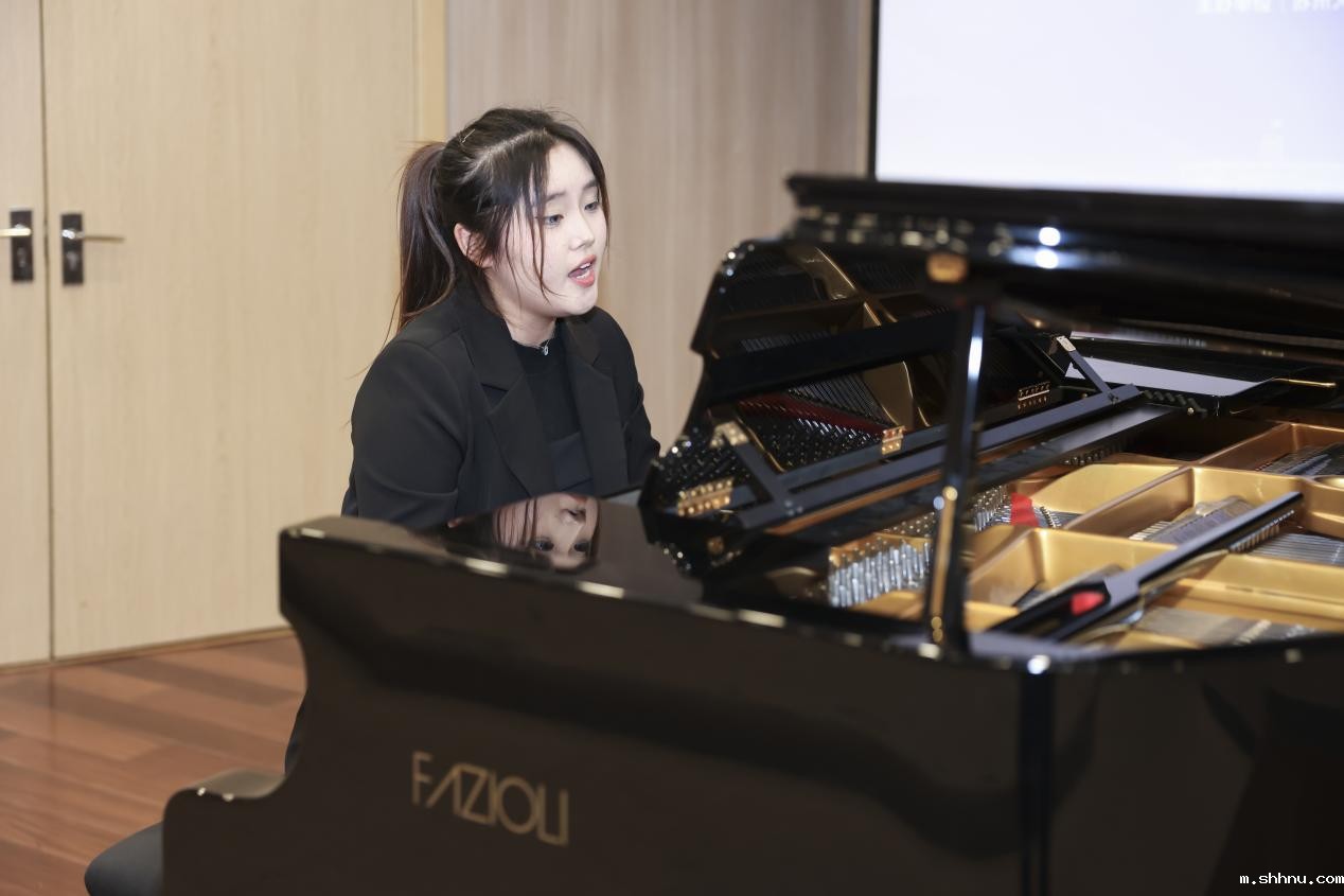 随后,必威BetWay在线官网钢琴系李春老师以“探索钢琴即兴创编在课程教学中的融合运用”进行了课程展示。她认真授课,带着学生们一同进行演示,呈现了一场别开生面、精彩绝伦的现场教学。