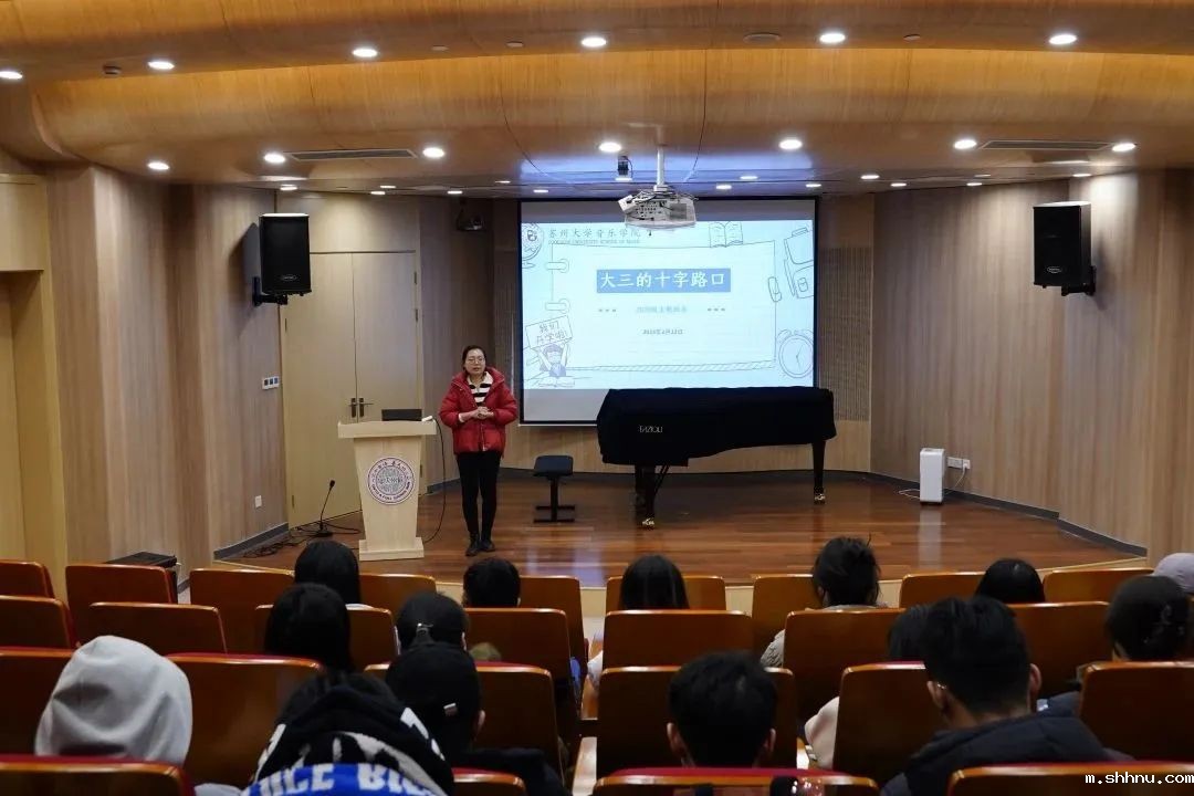 大三的同学们开始正视自己毕业以后将要面临的规划,考研、就业、出国成为了同学们经常讨论的话题。张晶老师以《大三的十字路口》为主题从考研、考编、出国、乐团等几个方面进行就业动员及初步指导,让同学们对自己保持清晰的认知,确立自身目标,积极采取行动。