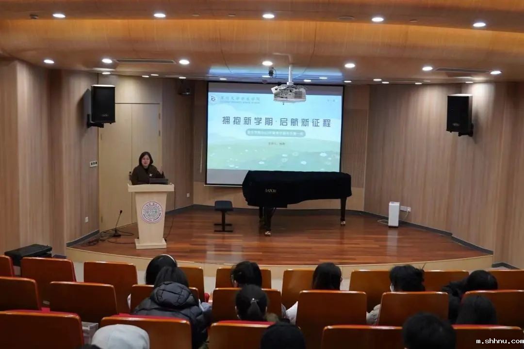 学院党委书记胡晓玲以《不负韶华 奋发进取 以党的二十大精神指引青年学生成长成才》为题讲授了开学第一课。她围绕党的二十大报告,从两个方面与同学们进行分享交流。一是胸怀理想,志存高远。坚定正确的政治方向,怀抱梦想又脚踏实地,要为全面建设社会主义现代化国家、实现“第二个百年奋斗目标”接续奋斗。二是不负韶华,奋发进取。要把学习作为首要任务,作为一种责任、一种精神追求、一种生活方式,贵在勤奋、钻研和恒久。最后,胡书记勉励同学们“初心不改凌云志,弦歌不辍启新程。”希望同学们要做“有理想、敢担当、能吃苦、肯奋斗”的新时代新征程的奋进者。在青春的赛道上奋力奔跑,为学校高质量发展、为全面推进中华民族伟大复兴贡献力量。
