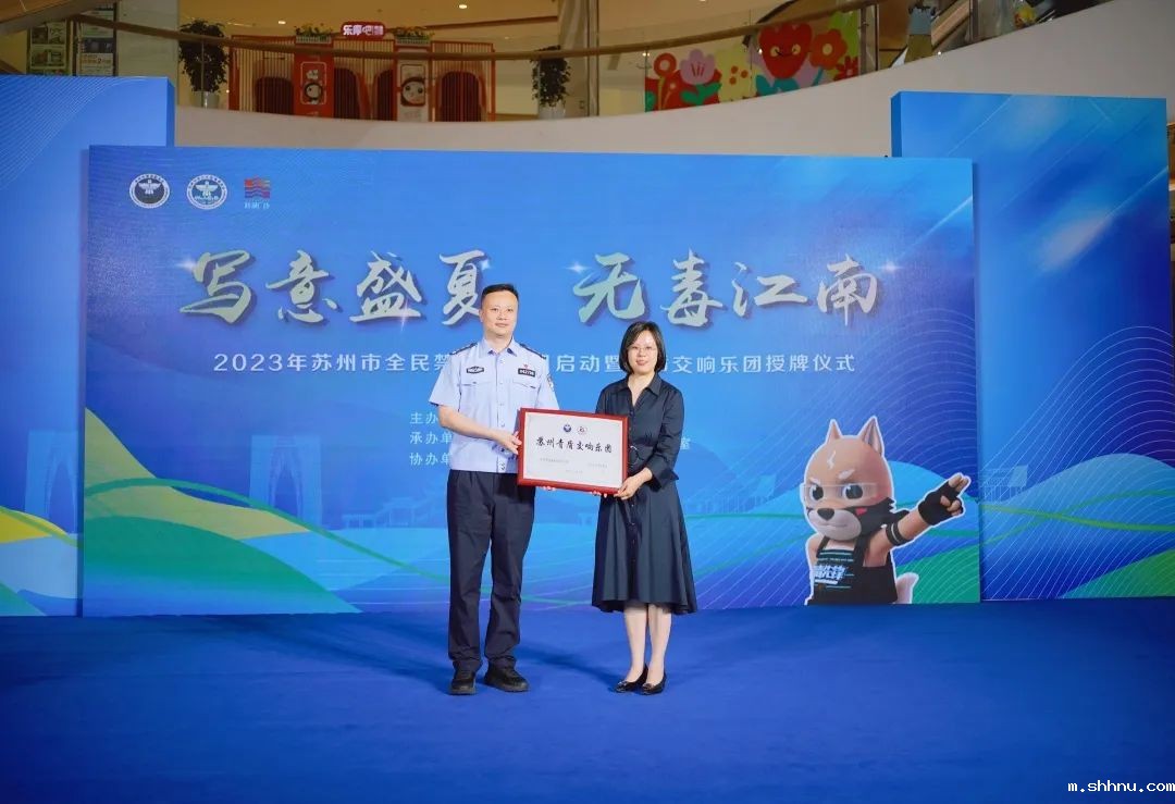 6月1日,“写意江南 无毒盛夏”——2023年苏州市全民禁毒宣传月启动暨青盾交响乐团授牌仪式在吴江区新湖广场隆重举行。苏州市禁毒委副主任兼禁毒办主任、市公安局党委委员、副局长吴建伟,bw必威西汉姆联官网首页党委副书记、副院长杨燕,苏州市禁毒办副主任、市公安局禁毒支队支队长赵冰,吴江区政法委员会副书记、区社会矛盾纠纷调处化解中心主任、区禁毒委副主任沈正华等人出席此次活动。