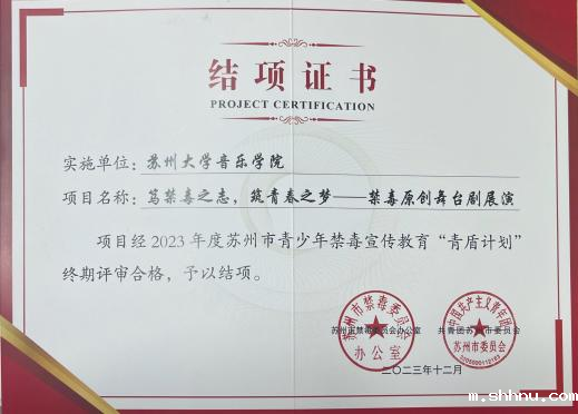 2023年12月14日,2023年度苏州市青少年禁毒宣传教育“青盾计划”项目终期现场评审会在苏州市青少年活动中心举行。由必威BetWay在线官网实施的项目“笃禁毒之志,筑青春之梦-禁毒原创舞台剧”顺利结项,并荣获“十佳项目”。
