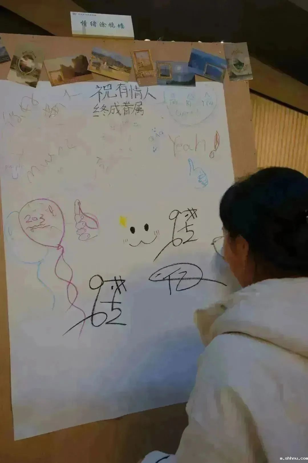 “情绪是多彩且守恒的,可别让今天的坏心情赶走明天的好运气。”同学们把情绪、压力和烦恼在一笔一画之间都留在墙上,画走烦闷,画来愉悦。