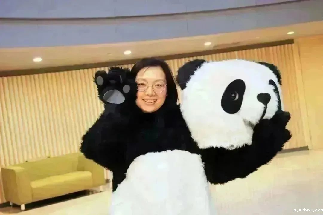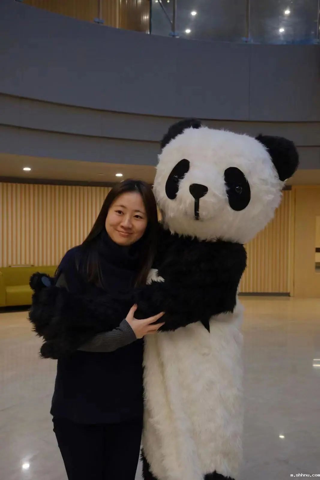 辅导员张晶老师化身熊猫晶晶给予同学们爱的抱抱,同学们感受到爱意和温暖。