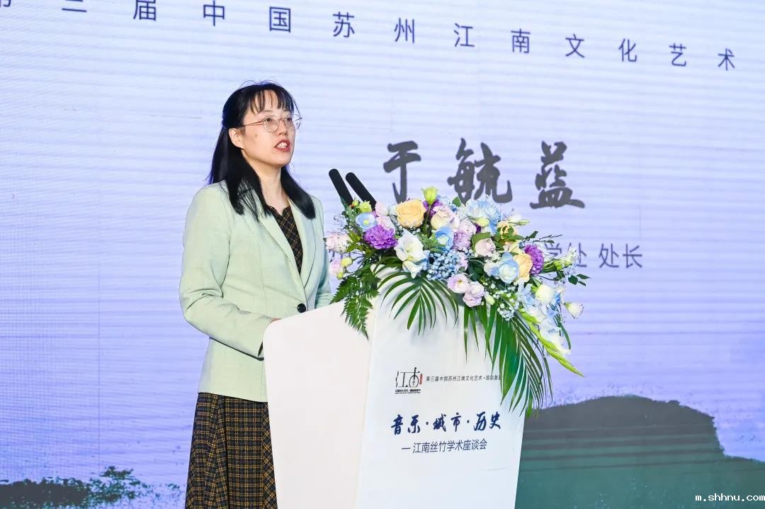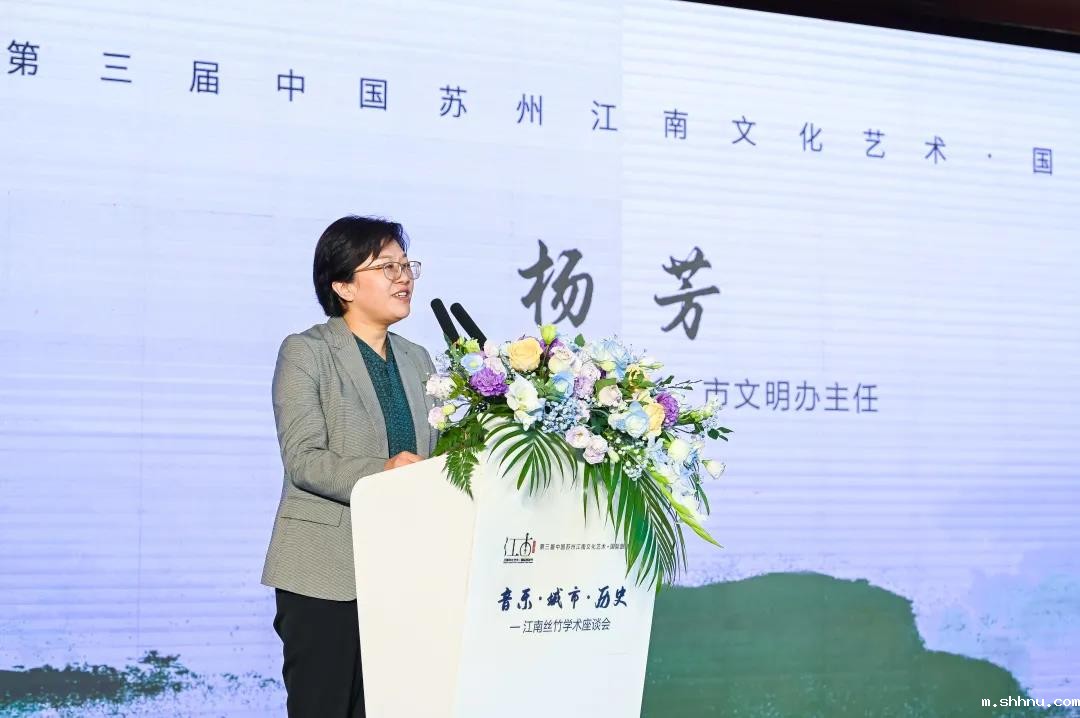 28日上午的开幕式上,中共苏州市委宣传部副部长、市文明办主任杨芳与苏州大学人文社科处处长于毓蓝代表市委宣传部与苏州大学分别致辞。在致辞中,杨部长提出全力打响“江南文化”品牌,致力于为江南丝竹的保护与传承发展提供良好的环境,连通传统与新时代、连通人民与艺术家,为江南丝竹的未来献计献策,共谋发展。