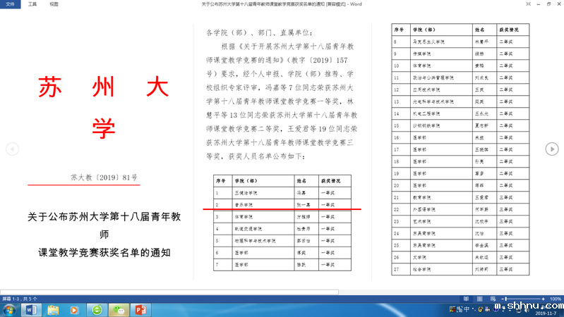 近日,我院青年教师张一嘉喜获苏州大学第十八届青年教师课堂教学竞赛一等奖。