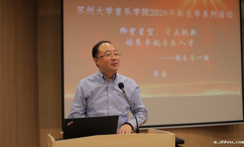 吴磊院长在新生第一课中,代表学院对大家的加入表示衷心的祝贺和热烈的欢迎,并为同学们讲授了2020年的特殊含义以及背后蕴含的中华民族伟大精神,让新生们对抗疫精神、东吴校史以及音乐精神有了更深刻的认识。