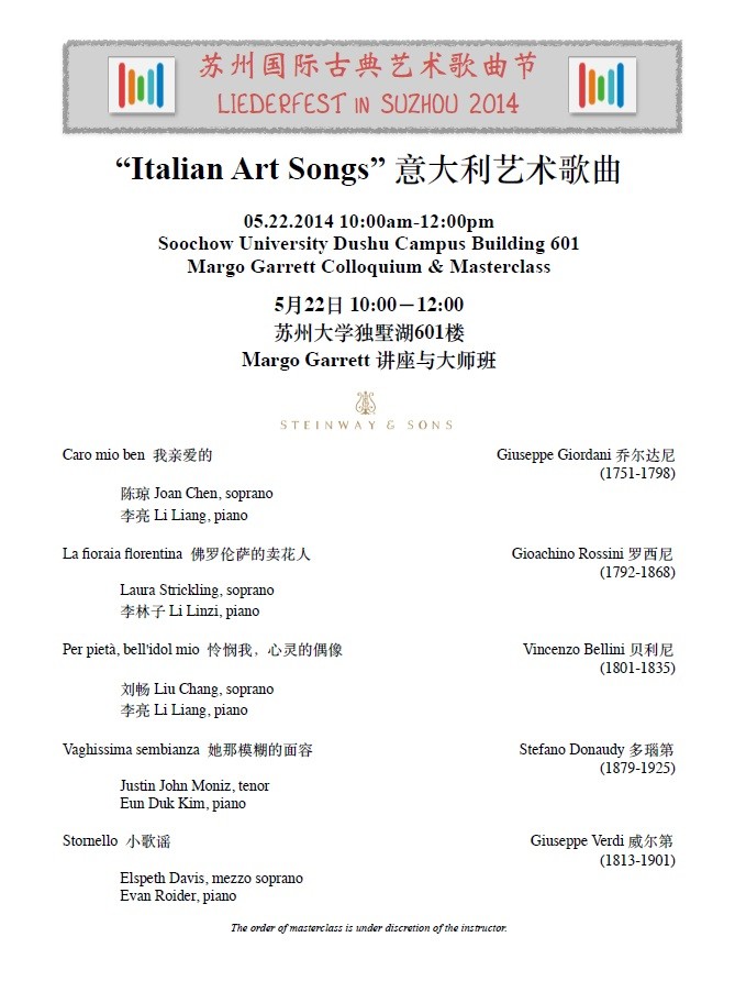 Margo Garrett 大师班 ----- 意大利艺术歌曲