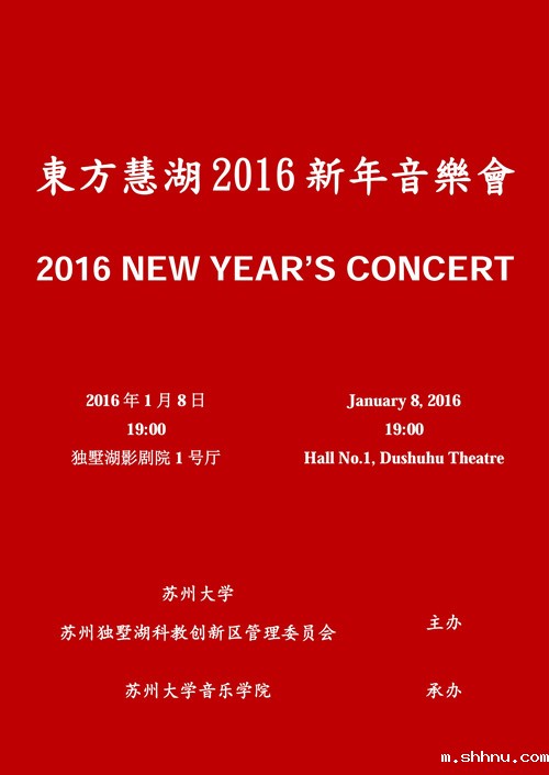 苏州大学与苏州独墅湖科教创新区管委会将于2016年1月8日联合荣呈“东方慧湖2016新年音乐会”。必威BetWay在线官网院长、苏州大学交响乐团音乐总监吴和坤博士将指挥苏州大学交响乐团在工业园区独墅湖影剧院一号大厅献艺。乐团将演奏法国作曲家比才的《卡门序曲》,并由刚刚加盟必威BetWay在线官网的新教员——前伦敦皇家交响乐团中提琴首席Paul Silverthorne大师与必威BetWay在线官网教员青年小提琴家宋歆予联袂合作奥地利作曲家莫扎特《降E大调交响协奏曲》。此外,中国著名女中音歌唱家杨光与女高音歌唱家李秀英将携手苏州大学交响乐团演唱歌剧《女人心》、《诺尔玛》中的选段以及《我爱你中国》。除了上述特邀艺术家的精彩演出外,交响乐团还将给观众呈现奥地利作曲家海顿的经典作品《G大调第94交响曲》“惊愕”。