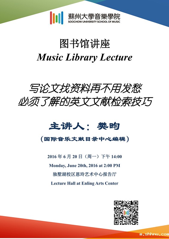 现在再也不用发愁了!来自国际音乐文献目录中心(RILM)的樊昀老师将会为同学们介绍主要的外文数据库以及不同的搜寻方法,并解答这方面的问题。