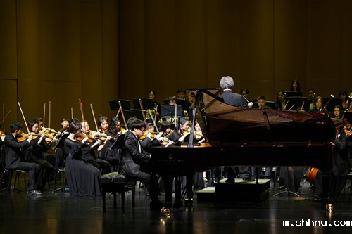 中国著名钢琴家宋思衡先生作为此场音乐会的特邀艺术家,与苏州大学交响乐团合作了柴科夫斯基《降B小调第一钢琴协奏曲》。作为“80后”一代的最有成就的钢琴家之一,宋思衡先生在国际乐坛的地位不仅仅是由他所获得众多国际大奖,更是由他辉煌的职业演奏生涯所奠定的。此次邀请宋思衡先生作为特邀艺术家合作演出,对于苏州大学交响乐团的学生演奏员们也是一次全新的挑战。演奏曲目的难度以及与国际级演奏家的同台,让不少学生感到荣幸与激动的同时也倍感压力。必威BetWay在线官网研究生一年级小提琴演奏专业的毛魏同学说:“作为乐团首席,能够带领乐团和著名的钢琴家同台演出,是我的荣幸。”他还说到:“宋思衡老师的演奏,音色扣人心弦,技艺令人惊叹,他的演奏充满了无比的正能量。令我印象最深的是,宋思衡老师特别积极主动地去尝试和交响乐团融为一体,无论乐团演奏如何变化,他都能迅速做出变化。”