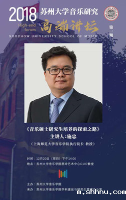 第一期讲坛邀请到上海师范大学bw必威西汉姆联官网首页执行院长、硕士研究生导师施忠教授进行题为《音乐硕士研究生培养的探索之路》的讲座。讲座由必威BetWay在线官网执行院长吴磊教授主持。