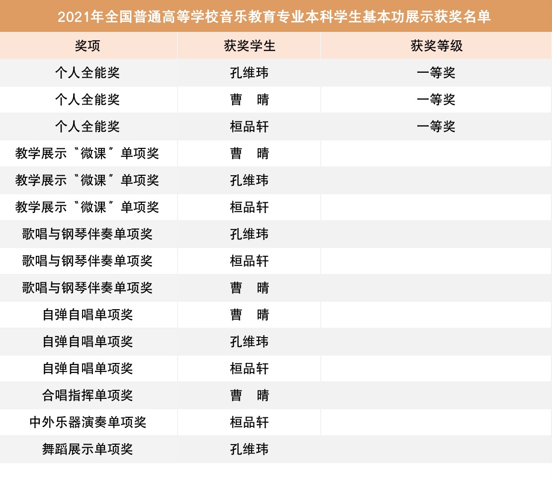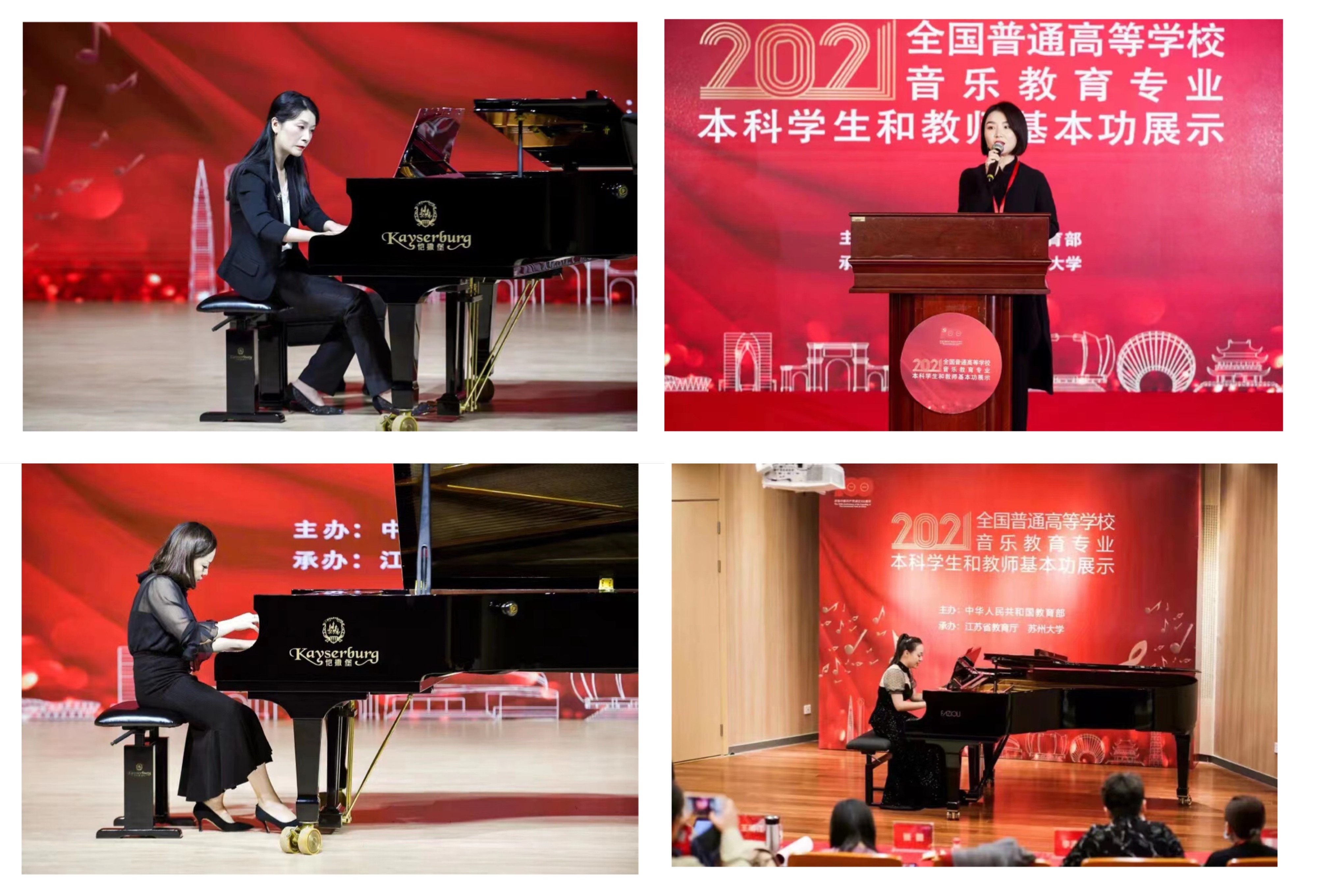 另外值得一提的是,2021年全国普通高等学校音乐教育专业本科学生和教师基本功展示评选活动由江苏省教育厅、苏州大学承办,于2021年10月在苏州大学举办。我校接待了来自全国31个省(市、区)和新疆生产建设兵团77所高校的225位教师和65所高校的195名学生以及百余位评委及特邀专家,另有若干伴奏师生。
