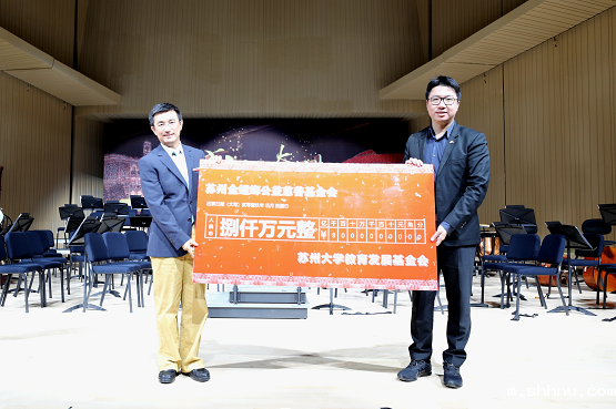 仪式上,金螳螂企业(集团)有限公司慷慨捐赠8000万元,用于独墅湖校区体育馆和学生活动中心建设。至此,金螳螂集团已累计为苏州大学捐资近1.5亿元。熊思东校长代表苏州大学接受了捐赠方代表、苏州金螳螂企业(集团)有限公司联席总裁朱明的捐赠,蒋宏坤会长为朱明颁发了捐赠纪念牌。